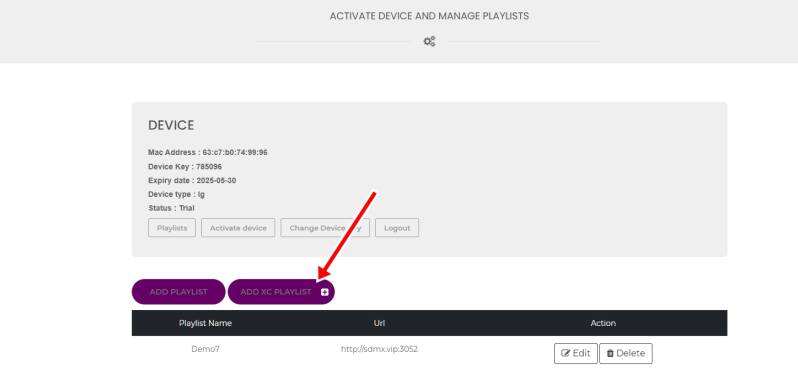 Dentro del panel, hacemos clic en el botón "Add XC Playlist" Luego: