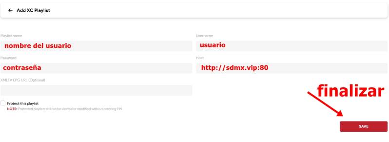 http://happyplaytv.lat:8080 (Asegúrate que el servidor sea http (sin “S”). y finaliza.